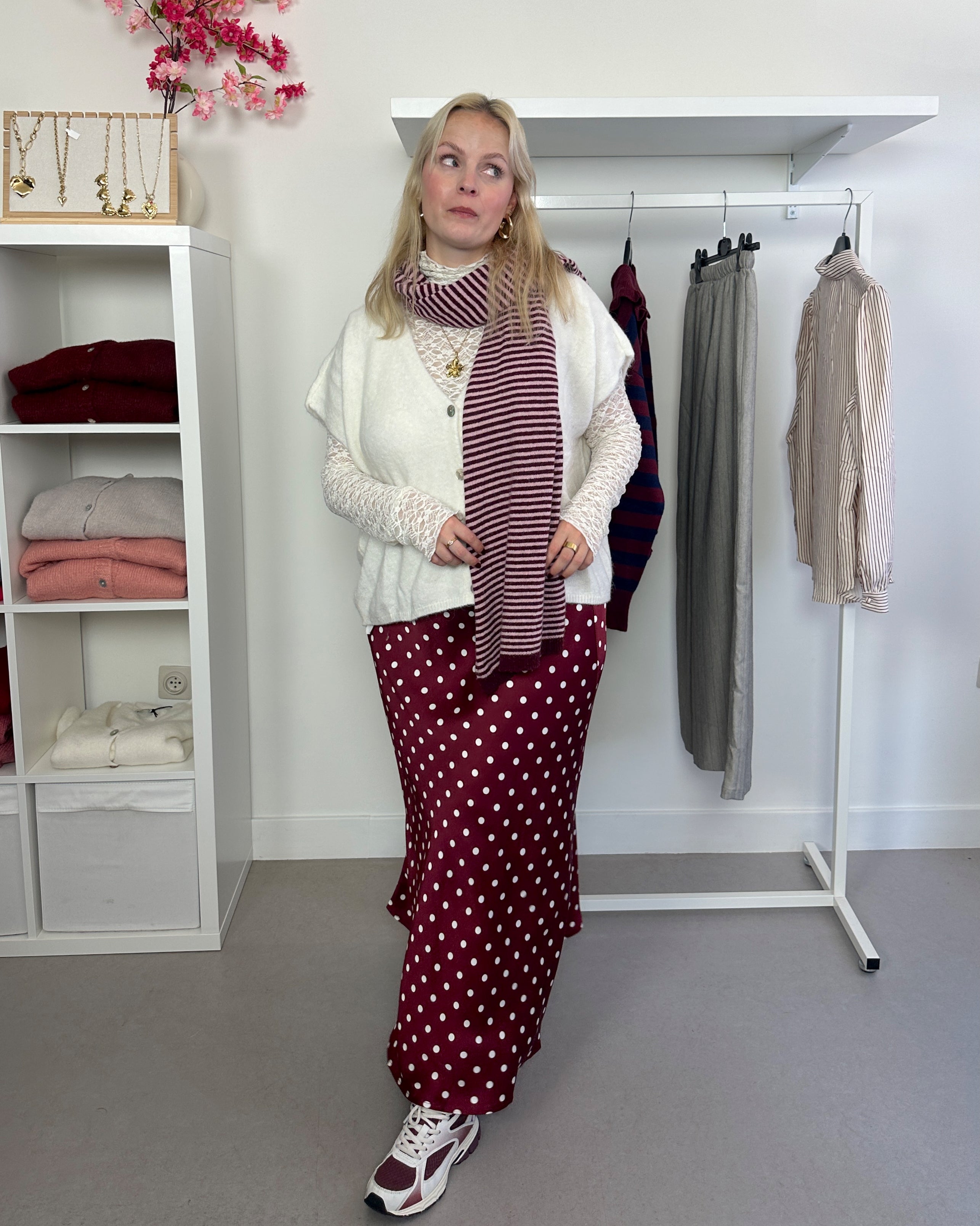 Productformulier Striped Scarf Bordeaux Cashmere Blend €35,00 Aantal In winkelwagen Dit artikel is een terugkerende of uitgestelde aankoop. Als ik doorga, ga ik akkoord met het opzeggingsbeleid en geef ik je ook toestemming de vermelde prijzen af te schrijven van mijn betaalmethode, op de vermelde frequentie en datums, totdat mijn bestelling is afgehandeld of totdat ik, indien toegestaan, opzeg.